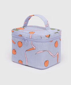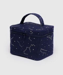 A roomy cosmetic case designed to make packing easier.
