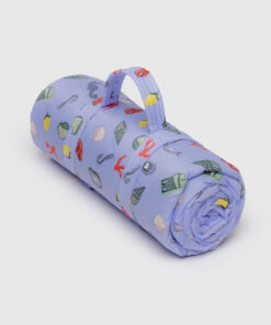 A quilted ripstop picnic blanket with carrying strap so you can roll it up and bring it anywhere.